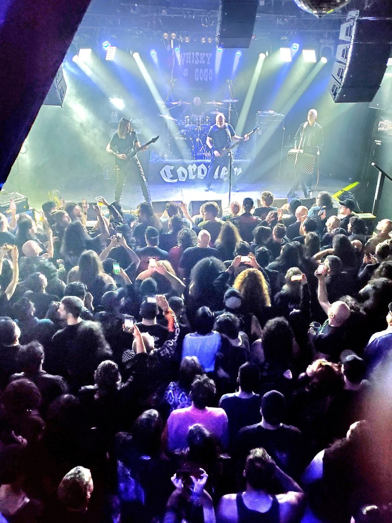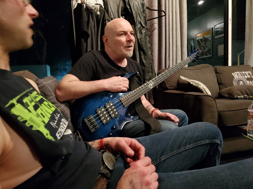 What we talked about mostly was the 1988 Christmas shows in Germany, where Coroner, Sacred Reich, Candlemas, and Destruction opened for Motörhead. It was their first European show, and the first night they played, the British contingent was an hour and a half late, causing the show to be equally late, so to avoid Motörhead having to go on in the wee hours, the played before Sacred Reich played last — following Motörhead, which no band wants to do. It was, in a word, harrowing. That said, they were given the penultimate slot before Motörhead the next night to make up for the previous night.